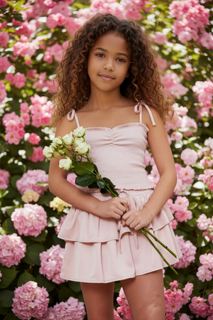 The Georgia Satin smocked top, ties in a pretty bow at the shoulder. This sweet top is so east to wear and goes perfectly with our gorgeous skirts. The satin is so silky. It can easily also pair back to your favorite jeans. It is that special top that you will want to wear all the time! This looks like a mini skirt but its actually a skort! Makes it so easy to wear everywhere. Cute little shorts under the ruffles! We love the smocked waist and bow tie in satin! Perfect with one of our matching tops. You will feel so beautiful and special from the moment you put it on! Satin is so silky and comfortable to wear!