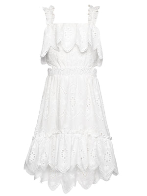 Hannah Banana Eyelet Scalloped Hem Dress - White