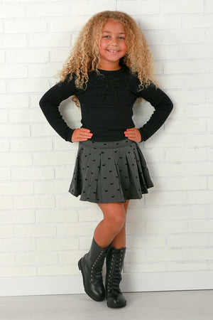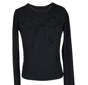Why settle for boring basics when you can have amazing " basics" like this one from Flowers by Zoe. This black long sleeved tee features a perfect bow on the front. This is a great top to mix and match with skirts and pants all season long.