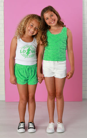 We love this textured daisy print from Flowers by Zoe. And this kelly green!!! Check out the matching tank top and love tank.