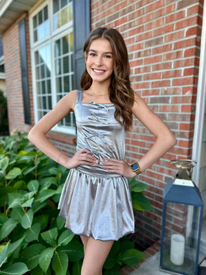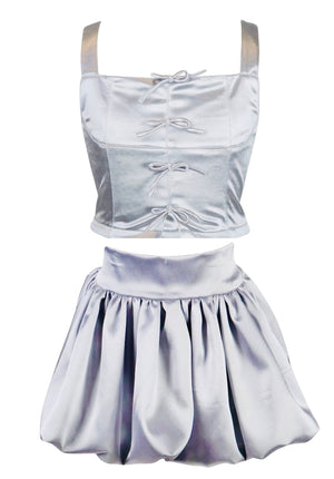 Flowers By Zoe Tween 2pc Silver Satin Bow Top + Bubble Skirt