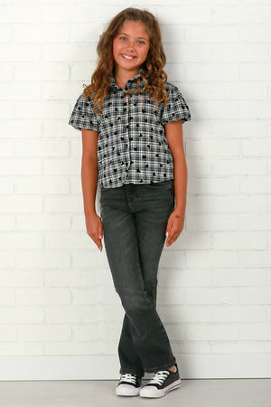 You know our store always keeps you updated with the latest tween girl clothing trends and this fall you will be seeing a lot of plaids. But let us show you it is not boring, its fresh and fun and we are here for it! Flowers by Zoe did an amazing job for our tween girls fall fashions with great plaids mixed with hearts and cool styles like bubble skirts, flare skirts and more. The mix and match options will be endless for her to style. More pieces will be added in future deliveries this fall that will mix back with all of these black and white pieces.