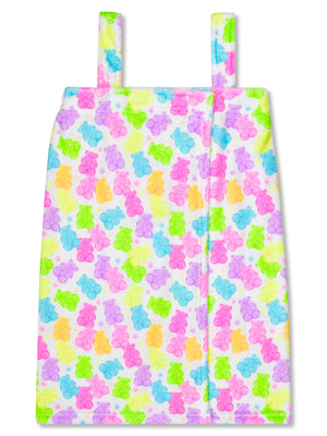 Make her post-bath routine fun in this yummy gummy print Spa Wrap by Iscream! Crafted from 100% ultra-plush polyester, this wrap provides the softest, warmest hug after a soak, shower, or swim. Designed for maximum comfort and security, it features adjustable Velcro closing and straps to ensure a snug, perfect fit that stays put. It's also entirely machine washable for easy cleanup and comes packaged on a hanger, making it a fantastic gift! Available in children's sizes, this floral spa wrap turns drying off into the sweetest part of the day.A bestselling gift for girls. The girls love Iscreams spa wraps. They are perfect for after the shower or to wear while getting ready. Elasticized at the top so they stay in place. The perfect gift for your spa and beauty girl.