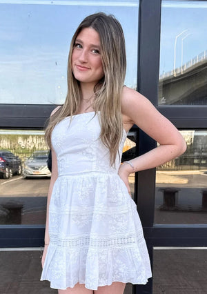 The Bridget Dress is the perfect blend of elegance and charm. With delicate lace details and a flattering fit, it’s ideal for graduation or a fun brunch with friends. Effortlessly stylish and versatile, this dress will keep you looking chic all day long!