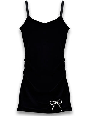 The ULTIMATE tween girls party dress is here. How fabulous is this black dress with the rhinestone bow detailing! So elegant and on trend for the bow moment that is so hot right now. This tween dress is perfect for any special occasion. Parties, Mitzvas, concerts and more