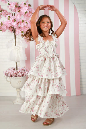 The smocked bodice with lace bow adds a feminine touch, and provides comfort and flexibility for all-day wear. Finished with a flowy, tiered maxi skirt, this dress moves beautifully whether she’s heading to school, a birthday party, or a spring celebration. Crafted from breathable cotton and fully lined, it’s exceptionally comfortable—perfect for play, yet polished enough to dress up for special occasions.
