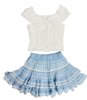Ruffled and refined- this beautiful twirly skirt is perfect for summer. Dress it up or dress it casual with a tank. The options are endless for our KatieJ girls.