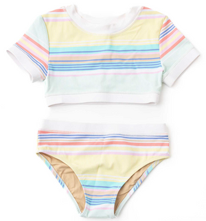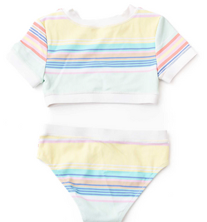 Shade Critters Surfer Stripe Ribbed Crop Short Sleeve 2pc Swimsuit