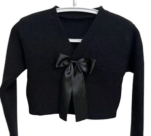 Cream soft ribbed cotton cardigan with black silk bow detail. Medium weight sweater, perfect to throw over a dress on cool evenings. The addison bow cardigans are perfect to layer over dresses and look very sweet paired with any outfit as well.