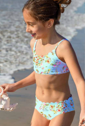 The girls can't get enough of the floral trend and we are obsessed with it too. How pretty is this blue floral girls 2pc swimsuit. We love the coverage on this style. It gives a sporty fit with a girly vibe.