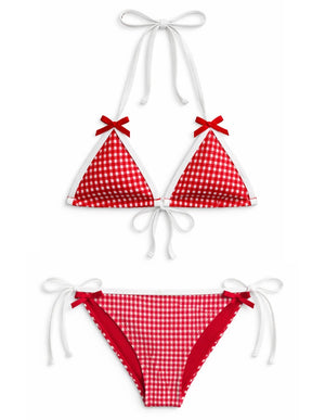 The Coral Gingham Bikini is the sweetest summer staple—playful, cute, and made for sunshine days. With its gingham print and delicate bow details, it’s the perfect mix to take you from beach days, pool hangs, and everything in between.