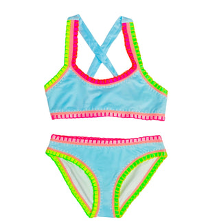 PQ Kids Sporty Rainbow Embroidered Bikini- Ice Blue
