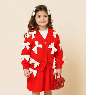 We love this sweet holiday bow skirt from Petite Hailey.  This would be a perfect girls to wear with the matching cardigan for family photos and holiday celebrations.