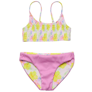 Moms love our Snapper Rock girls swimsuits and year after year they trust this high quality, SPF50 swimwear for their girls. They hold up incredibly well and of course they always have the cutest on trend prints every season. Say hey to your new fave teen bikini. The Aloha Vacay Bikini features a shirred crop top (hello trend alert) and reversible bikini bottoms - flip from bold lilac rib to tropical hibiscus print depending on your vibe. It's like 2 swimsuits in one!