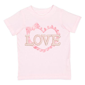 This pink t-shirt by Sweet Wink features a sparkling “LOVE” design accented with pearls for a sweet, festive touch. Perfect for Valentine’s Day celebrations or spreading love all year long. This is such a pretty style, we can't even tell you how pretty it is in person. The details on this girls pink love tee are so feminine and pretty.