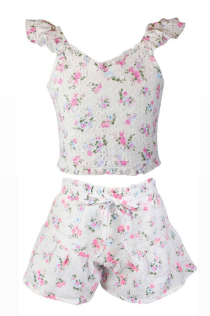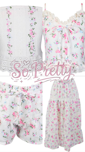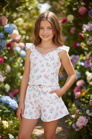 We fell in love with this new style. They are so cute and look so elevated in style. And this floral print on eyelet is just beautiful in person. We have so many coordinating tanks to match these. An effortless feminine look with two of the hottest trends for girls fashion for 2026- floral and eyelet.
