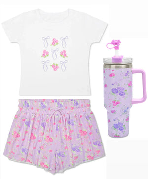 The girls are loving this new floral print from Iscream. Its so pretty with hot pink and lavender florals. These shorts are always the girls go to every season. They are super comfortable and have great features like an all elastic waist with a drawstring.