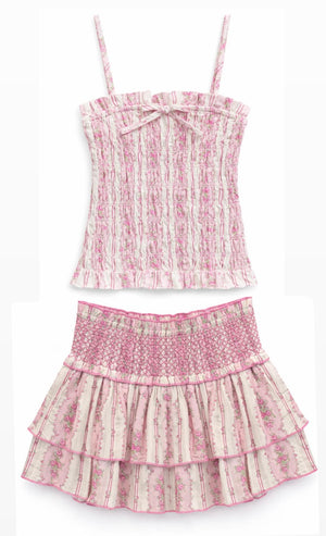 Love KatieJ but don't want a cropped top? Then you want to meet Alma! Alma is a meet and greet length so it will meet the waistline and not show belly. You still want to size up though for this one. This one in the pink cottage stripe is so pretty. We love it with the dominique skort. The Alma Top blends comfort and style with its flattering smocked bodice and flowing full-length design. This top offers a figure-hugging fit and movement. Perfect for any occasion, this versatile top pairs effortlessly with skirts or jeans for a chic, modern look. KatieJ NYC girls clothing is a favorite with our tween girl shoppers.