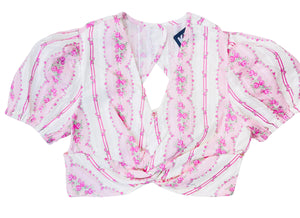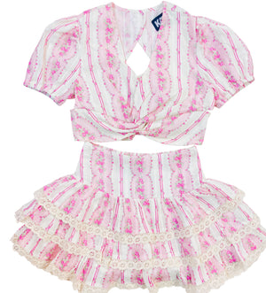 Juliet is always a KatieJ girls favorite every spring and summer.  She has sweet puff sleeves and a bow tie back. The juliet top is super cute with any of the skirts in the collection. This floral print is not going to last long, its on everyones list this season. KatieJ NYC girls clothing is a favorite with our tween girl shoppers.