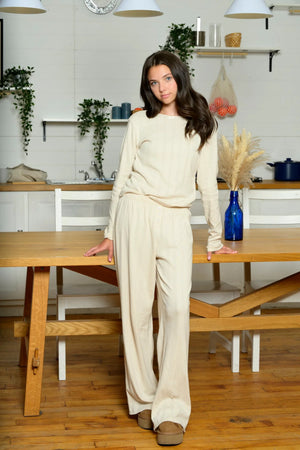 The Marina Pointelle Long Sleeve is all about the little things - delicate knit texture, a flattering fit, and that effortlessly pretty look you can dress up or keep casual. It’s lightweight, comfy, and just the right amount of romantic. Wear it with your favorite sweats or style it with a skirt - either way, it’s a total yes.