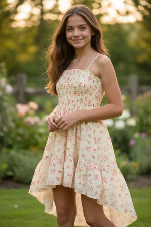 An all time favorite for Katie J girls. Juliet is always a stunner and in this vintage floral print it is fabulous. The Juliet Smocked Bodice Hi-Low Dress is the perfect blend of flirty and feminine! With a flattering smocked bodice that hugs and a playful hi-low hem, this dress gives you all the confidence and comfort you need. Whether you're strolling the beach or enjoying a summer evening out, the Juliet dress is your go-to for effortless style and charm. Dress it up or down—it's sure to turn heads wherever you go!