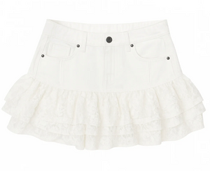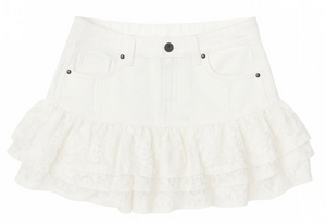 Tween girls love to stand out and KatieJ knows just how they want to do it! The Malaga Skirt blends classic denim with a girly twist, featuring clean white fabric and soft lace ruffle details. The structured shape adds a bit of edge, while the lace brings just the right amount of feminine flair. Easy to style, made to stand out.