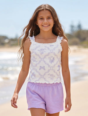 Designed in a soft lavender hue, these shorts add a sweet tone to any outfit while still being easy to mix and match. The elastic waistband provides a flexible, pull-on fit that’s ideal for active days, while the soft 100% cotton fabric keeps things breathable and comfortable all day long.