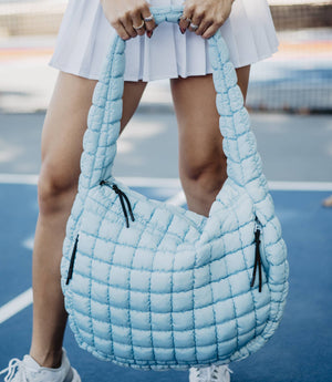 Looking to boost your cool girl cred? Say hello to the Light Blue Puffer Tote Bag, the ultimate mix of style and functionality. It’s oversized enough to carry your daughters whole life (and look good doing it). Here’s why you need this tote in your lineup: 💙 Trendy: Quilted puffers are a fashion fave right now, and your girls will love pairing this bag with their OOTD. 💙 So Many Pockets: Organization meets aesthetics—every girls dream. 💙 Versatile Appeal: Sleepover? Yes. Travel? Of course. Practice run? Slay. This bag isn’t just an accessory—it’s a statement.