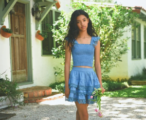 A best seller every season- The Little Peixoto Adina Skirt Set, the perfect addition to your little one's wardrobe. This 2pc set features a beautiful blue this season that we just adore. Made from 100% cotton, this set is not only on trend, but also comfortable for all-day wear. The girls love this set for it's endless style options. It is easy for them to dress it up or to wear it casually for a summer day.
