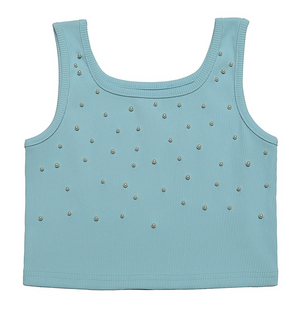 She will shine everywhere she goes in this sprinkled pearl top from girls fashion powerhouse Mia New York. This top is so pretty in light blue and is sprinkled with pearls all over the front. This is a great style for the girls to mix and match with shorts, pants, and skirts all season long.
