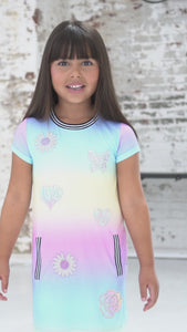 The MIA New York Signature Dress is back—and better than ever. This perennial best seller returns for the season in a fresh pastel rainbow print accented with trendy statement patches, making it an instant favorite for girls who love style with personality.