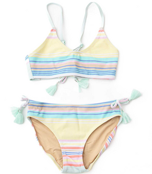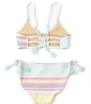 Shade Critters Surfer Stripe Ribbed Tie Back 2pc Tween Swimsuit