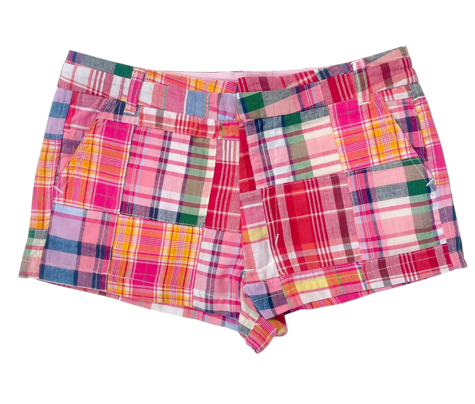 Add a pop of retro cool to her summer wardrobe with the KatieJ NYC Multicolor Patch Plaid Shorts for tween girls.