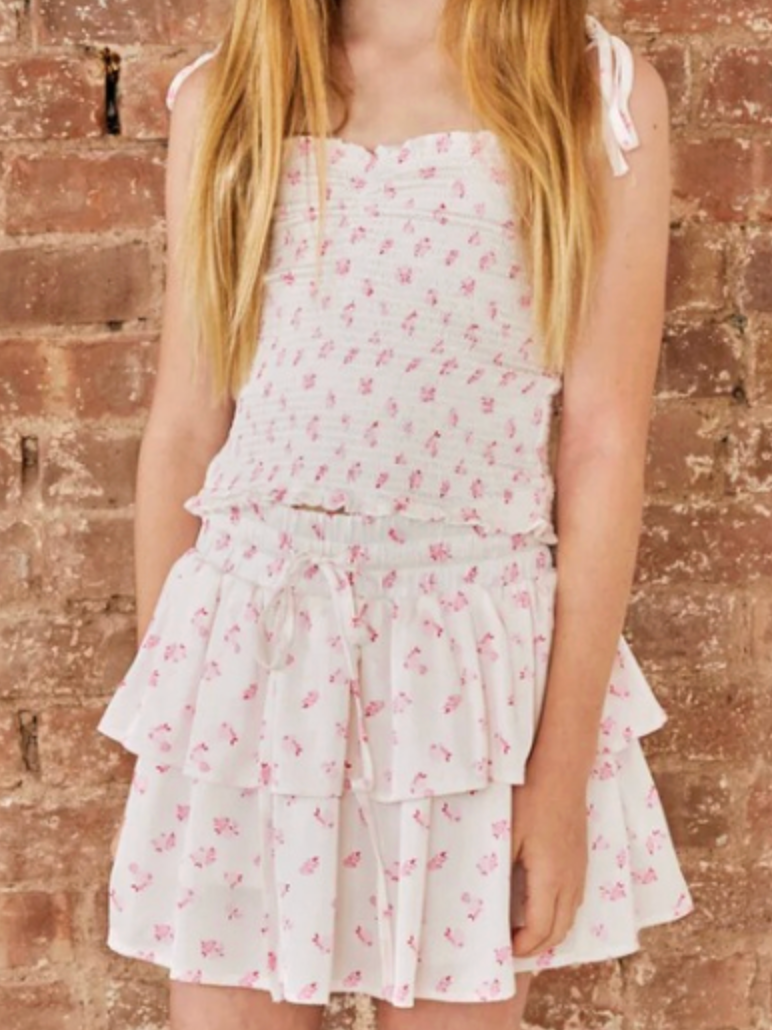 Lightweight and easy to style, this girls boutique skirt pairs beautifully with the matching KatieJ Livi Tee in Cutesy Rose for a coordinated tween set. It also looks adorable styled with a basic pink tee or tank for a more casual everyday look.