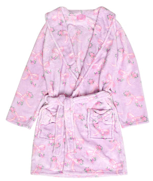 Fleece Bath Robe: Orchid Floral Bow Print