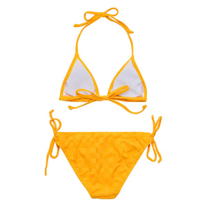 The triangle top offers adjustable neck and back ties for a secure fit, along with removable padding in sizes 10–16 for added versatility. Paired with side-tie bottoms, this set ensures a comfortable, flexible fit that’s perfect for growing girls.