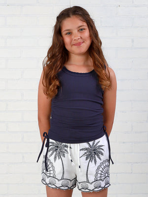 This Rockwilde set is so perfect for spring break, vacations, and all summer long. We love the crisp white and navy combo. And the embroidered palm accents on the shorts looks so luxe.  We love Rockwilde for its unique boutique styling.  Crafted from luxe fabrics with meticulous attention to detail, this two-piece set delivers the elevated comfort and distinctive flair Rockwilde is celebrated for worldwide. An ideal choice for girls who want to express their personality through fashion.