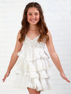 KatieJ NYC is known for elevated tween fashion, and this dreamy tiered dress is no exception—equal parts classic, feminine, and effortlessly cool.